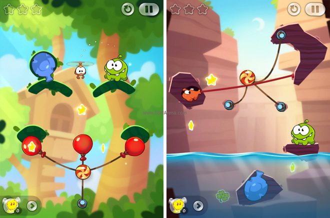 در Cut the Rope 2، بازیکن باید به اومنوم (موجود سبز و بامزهای که عاشق آبنبات است) کمک کند تا آبنباتها را با بریدن طنابها، استفاده از وسایل فیزیکی (مثل بادکنک، فنر، و حباب) و حل پازلهای خلاقانه به او برساند. مکانیک اصلی بازی مبتنی بر فیزیک است و بازیکن باید با زمانبندی دقیق و تفکر استراتژیک، آبنبات را به دهان اومنوم هدایت کند.